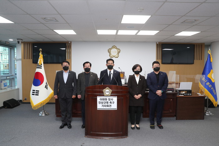 [시민일보 = 이대우 기자] 서울 종로구의회(의장 라도균) 여봉무·정재호·김종보·이륜구·이미자 의원이 최근 종로구의회 본회의장에서 ‘이태원 참사 진상규명 촉구 기자회견’을 열었다.