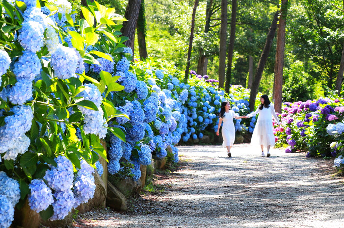 | ▲ 수국이 만개한 포레스트 수목원 길 / 자료사진 =해남군 제공 |