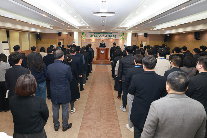 | ▲ 완도군, 2025년도 시무식 개최(신년사 통해 군정 운영 방향 밝히고 있는 신우철 군수)출처=완도군) |