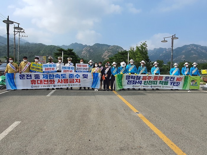 이번 캠페인은 하계 행락철을 맞이해 영암군, 영암경찰서, 모범운전자회, 녹색어머니회 등 26명이 참석한 가운데 코로나-19 방역수칙을 준수하면서“운전 중 휴대전화 사용금지, 제한속도 준수 및 보행자 안전 확보, 행락철 음주‧졸음운전 예방 및 전 좌석 안전띠 착용”을 중점적으로 교통안전 캠페인 활동을 펼쳤다.