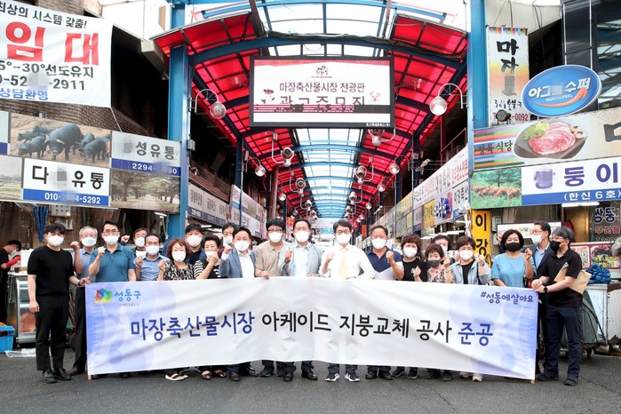 [시민일보 = 홍덕표 기자] 서울 성동구(구청장 정원오)는 최근 지역내 마장축산물시장 아케이드 교체공사를 완료, 안전하고 쾌적한 시장 환경을 조성했다고 24일 밝혔다.