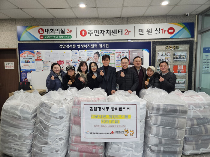 한편, 이날 전달된 이불 70채는 검암경서동 행정복지센터를 통해 독거 어르신 및 저소득 취약계층 가구에 순차적으로 배부될 예정이다.