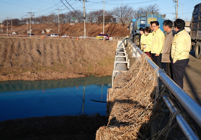 [평택=오왕석 기자] 평택시의회 복지환경위원회(위원장 김승겸)는 12일 화성시 소재 위험물 저장시설 화재로 오염수가 유입된 평택시 청북읍 관리천 오염사고 현장을 방문했다.