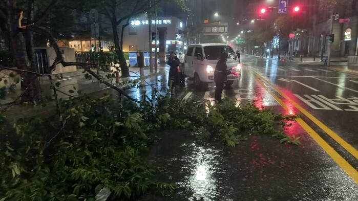 [시민일보 = 이대우 기자] 서울 강남구(구청장 조성명) 역삼1동이 집중호우로 도로를 덮친 가로수를 신속하게 초동대처 해 큰 피해를 막았다.
