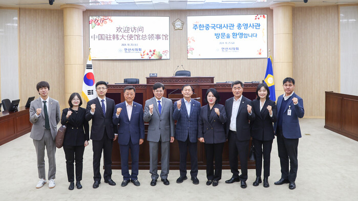| ▲ 안산시의회 의원들이 지난 25일 시의회를 방문한 주한중국대사관 총영사 일행을 접견했다 /사진제공=안산시의회 |