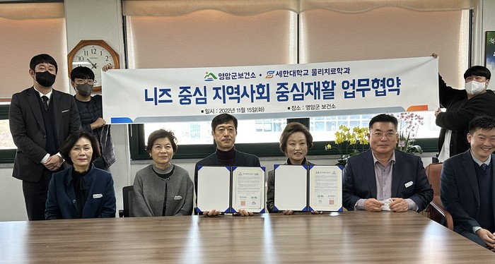 [영암=정찬남 기자] 전남 영암군보건소가 사회적 약자(장애인, 노인, 민간인)인 소외계층 대상 물리치료 등 의료보건 서비스 실시를 위해 지역사회 현황 전문연구 데이터 활용이 가능한 세한대학교와 ‘지역사회 중심 재활업무 협약(MOU)’을 지난 15일 체결했다.