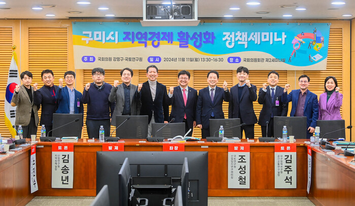 [구미=박병상 기자] 경북 구미시가 11일 강명구 국회의원(구미시을) 주관으로 의원회관에서 열린 ‘구미시 지역경제 활성화를 위한 정책세미나’에 참석했다.