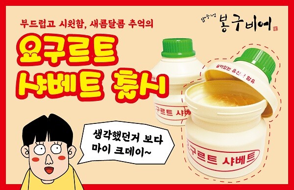 이번 신메뉴는 ‘눈으로는 즐겁고, 입으로는 맛있다’라는 슬로건처럼 요구르트 모양 플라스틱 케이스안에 샤베트가 들어있는 시각적으로 재밌는 요소를 주었다. 또한 내용물은 새콤달콤한 요구르트의 맛에 샤베트 특유의 풍미와 부드러움이 더해져 음주 후 느껴지는 갈증해소에 탁월하다.