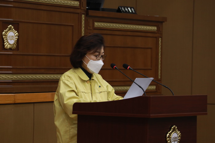 | ▲ 권영숙 의원이 CCTV통합관제센터 관제 인력 부족 문제에 대해 5분발언을 하고 있다. (사진제공=마포구의회) |