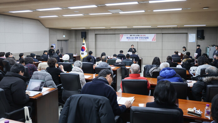 박강수 서울 마포구청장이 5일 오후 추가 쓰레기 소각장 건립에 반대하는 주민들과 간담회와 차담회를 열었다. 박 구청장이 마포 추가 소각장 건립 반대 주민간담회에서 주민들에게 행정소송 관련 내용을 설명하고 있는 모습. (사진=마포구청 제공)