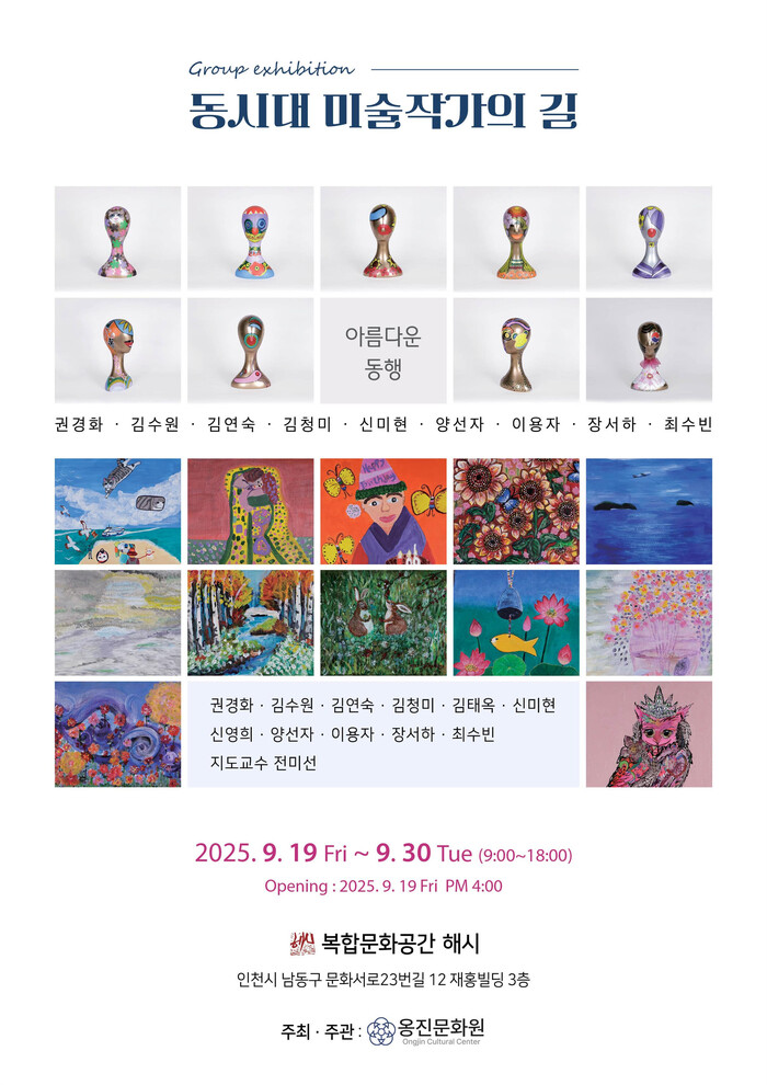 [인천=문찬식 기자] 인천 옹진문화원(원장 태동철)은 오는 19일부터 30일까지, 인천시 남동구에 위치한 복합문화공간 해시에서 옹진문화학교 「동시대 미술작가의 길」 과정 수강생들의 작품 전시회를 개최한다고 밝혔다.