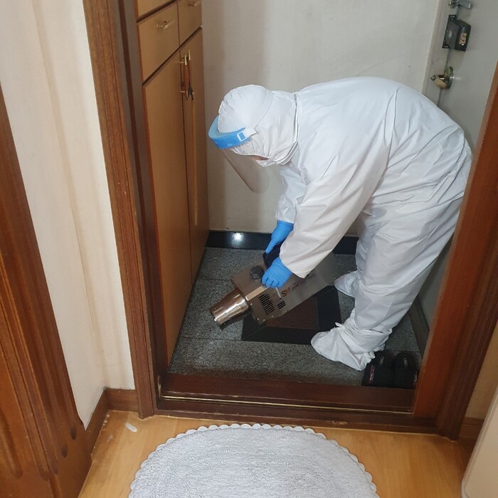 | ▲ 구 관계자가 빈대 예방 방역을 하고 있다. (사진=강서구청 제공) |