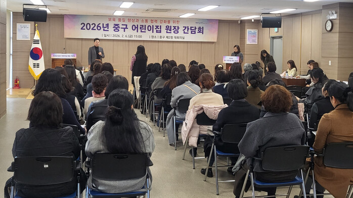[인천=문찬식 기자] 인천 중구(구청장 김정헌)는 병오년 새해를 맞아 영종국제도시 지역 보육 현장의 의견을 수렴하고 지역 맞춤형 보육 정책을 마련하고자 지난 6일 중구 제2청 대회의실에서 ‘2026년 중구 어린이집 원장 간담회’를 개최했다.