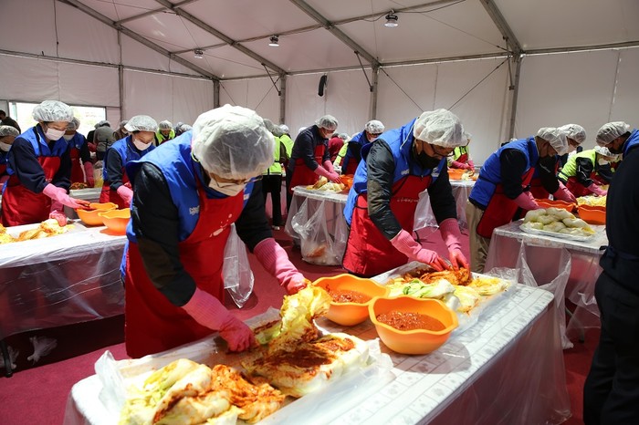 공단은 22일 빛고을 사랑나눔 김장대전 개막식에 참석해 김잠김치 350kg을 임직원 20여 명이 함께 김장김치를 버무리고 담그는 행사를 진행했다.