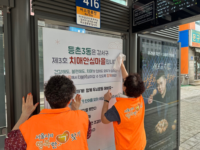 ‘치매안심마을 환경 조성’ 사업은 인지기능이 저하됐으나 일상생활이 가능한 경도인지장애 진단자가 참여하는 프로그램이다. 이들은 치매안심마을 4곳에서 공원 표지판 정비와 정류장 광고물 설치와 같은 마을 환경 개선작업을 수행하고 있다.