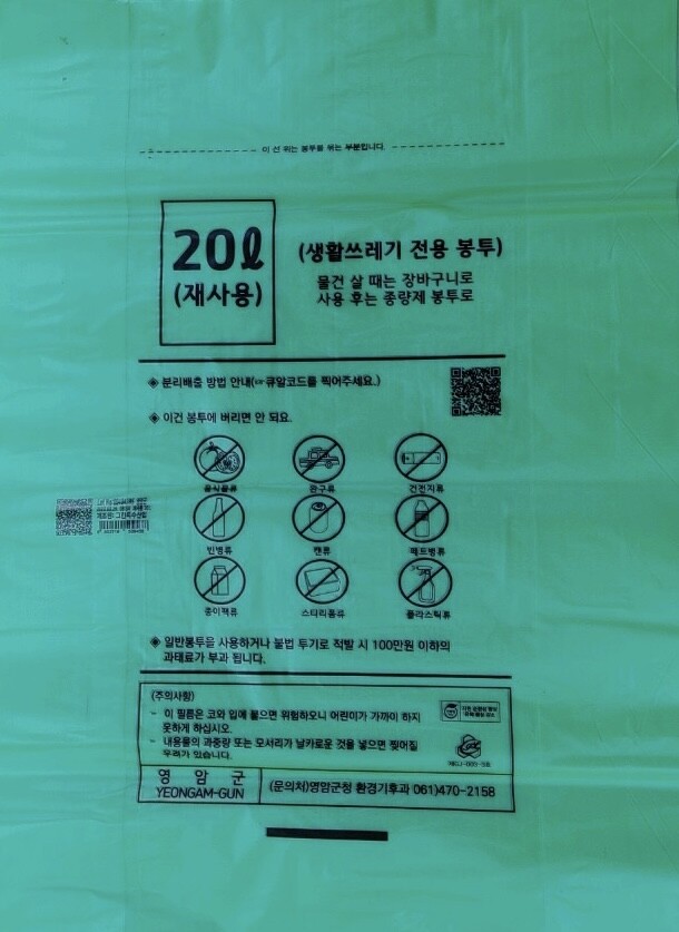 | ▲ 영암군 생활 쓰레기 20리터 전용 봉투 이미지 / 영암군 제공 |