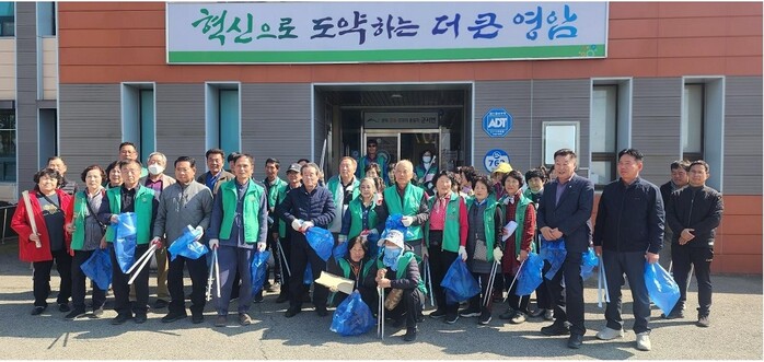 | ▲ 영암군 군서면 남·녀새마을지도자회, 지난 15일 면 소재지 일대 방치된 쓰레기 수거 등 환경 정화 활동 '줍깅' 기념촬영 / 영암군 제공 |