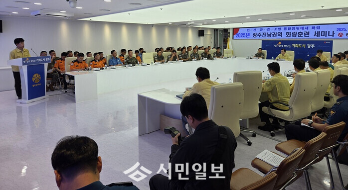 세미나 주요 내용은 ‘2025년 화랑훈련 통제 및 평가계획(2작전사)’, ‘2025 화랑훈련 준비계획(31사단·광주시·전남도)’, ‘광주공항 대테러작전 수행계획(광주경찰청)’, ‘다중이용시설 테러대응훈련 계획(전남경찰청)’, ‘긴급구조통제단 편성 및 임무역할(광주소방안전본부)’, ‘핵 대비 소방대응계획(전남소방본부)’ 등을 발표하고 토의했다.