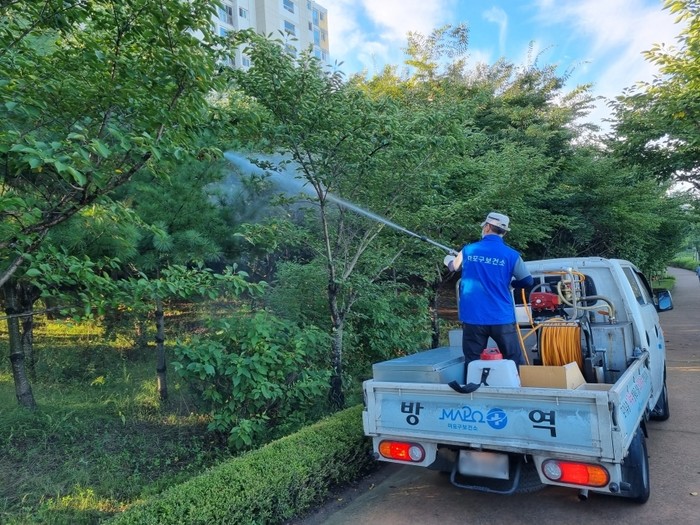 [시민일보 = 박준우 기자] 서울 마포구(구청장 박강수)는 최근 집중호우 및 폭염으로 모기 개체 수 증가와 더불어 감염병 발생이 우려됨에 따라 특별방역을 실시했다고 31일 밝혔다.