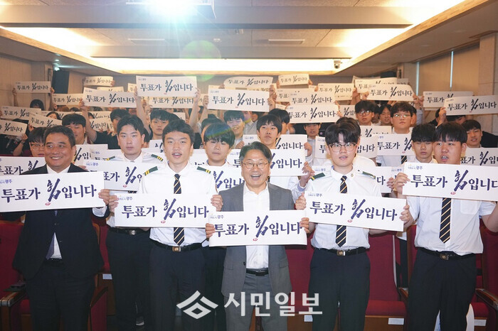 이 자리는 제21대 대통령선거를 앞두고 새내기 유권자로 첫발을 내딛는 고등학생들에게 투표의 역사와 가치를 공유하는 등 투표 참여를 독려하기 위해 마련됐다. 생애 첫 투표에 나서는 광주지역 18세 청소년은 6457명이다.