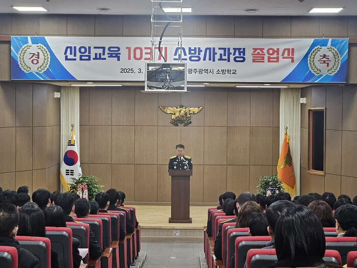 | ▲ 광주광역시소방학교, 7일 소방학교 대강당에서 제103기 신임교육 소방사 과정 교육생 졸업식 개최 / 광주광역시 제공 |