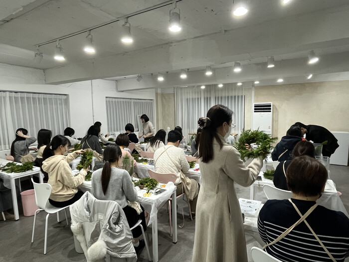 | ▲ 지난 19일 반포권역에서 진행한 싱글싱글 문화교실 ‘크리스마스 리스 만들기’ 프로그램 사진. (사진=서초구청 제공) |