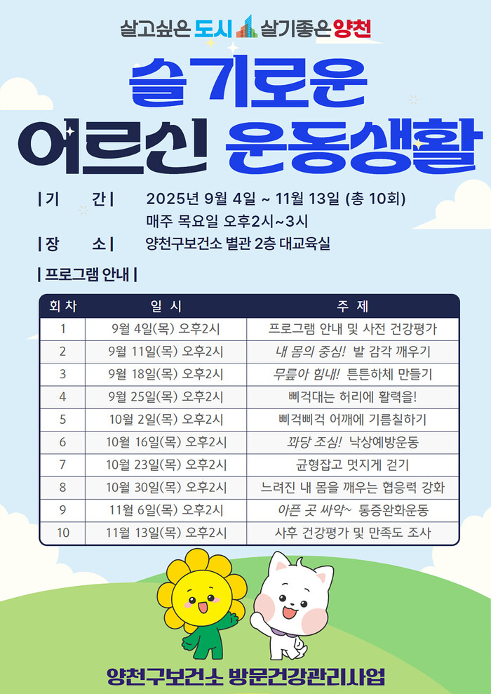| ▲ ‘슬기로운 어르신 운동생활’ 운영 안내 포스터. (사진=양천구청 제공) |