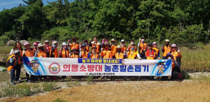 [해남=정찬남 기자] 전남 해남소방서(서장 최형호) 소속 해남군 의용소방대연합회 30여 명이 지난 5월31일 해남군 황산면에서 고령화로 인한 농촌일손이 부족한 상황에서 농가 일손 돕기를 했다.
