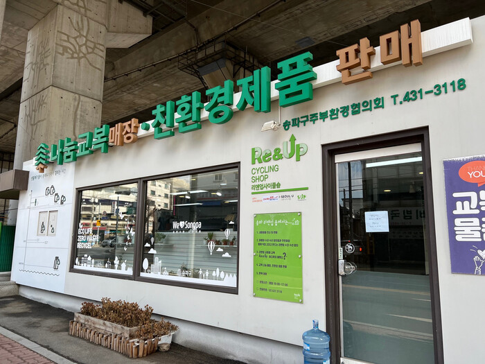 제품 제작과 매장 운영은 30년간 환경보호에 몸담아 온 환경 단체 ‘송파구 주부환경협의회’가 도맡아 봉사하고 있다. 판매수익의 일부는 여름철에는 지역 노인 대상 삼계탕 나눔으로, 겨울철에는 따뜻한 겨울나기 성금 기탁으로 지역사회에 환원하고 있다.