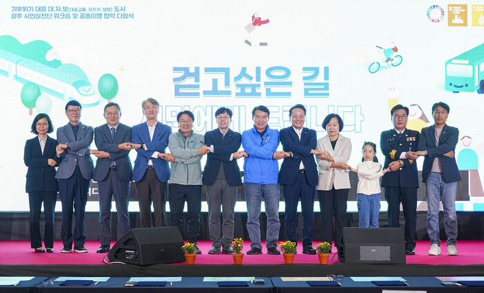 이날 협약식에는 강기정 시장을 비롯해 박필순 광주시의원, 이정선 광주시교육감, 임택 동구청장, 김이강 서구청장, 조익문 광주교통공사 사장, 한가윤 어린이 등 대·자·보 도시 시민실천단 100여명이 참석했다.
