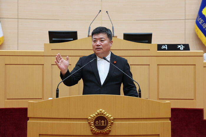 | ▲ 정영균 의원 본회의 촉구 건의안 제안설명 모습(사진=전남도의회) |