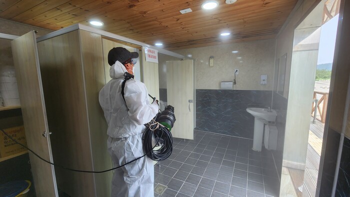 [신안=황승순 기자] 전남 신안군 자은면이 하계 휴가철을 맞아 지역내 공중화장실에 전문인력을 투입해 대대적인 방역소독 및 환경정비에 나선다.