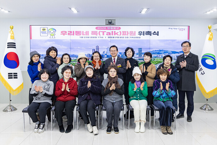 영등포구는 최근 구청 기획상황실에서 2026년 우리동네 톡(Talk)파원 위촉식을 했다. 사진은 위촉식에 참석한 최호권 구청장(뒷줄 가운데)이 참석자들과 기념촬영을 하고 있는 모습. (사진=영등포구청 제공)