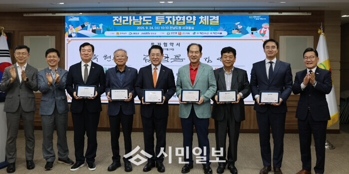 24일 전라남도청에서 전라남도와 영암군이, ㈜해진수산, ㈜해진식품과 투자협약을 체결하고 협력을 약속했다.