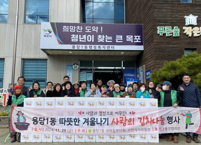 [목포=황승순 기자]용당1동은 어려운 이웃들의 따뜻한 겨울 밥상을 위해 지난 달 29일 동 행정복지센터에서 사랑의 김장 김치 나눔 행사를 열었다.