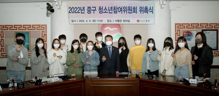 2022년 중구 청소년참여위원회는 위원장으로 선출된 인성여자고등학교 권예지 학생을 비롯해 지역내 초·중·고등학교 학생 18명으로 구성됐다.