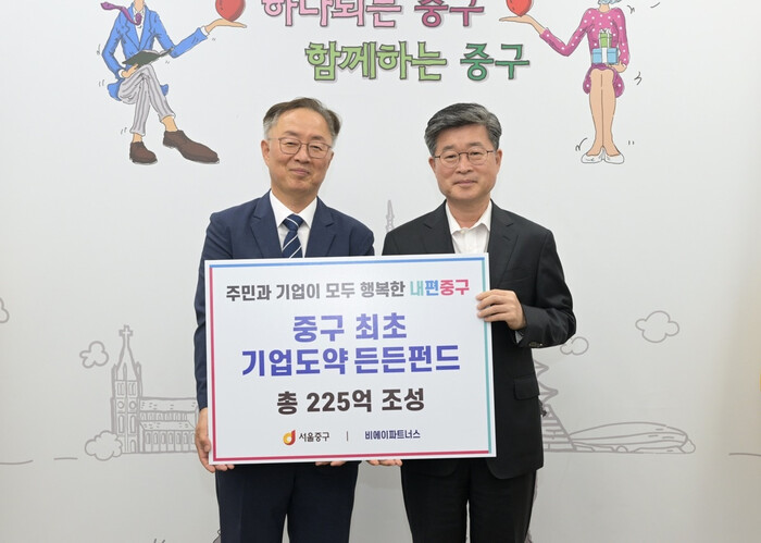 [시민일보 = 여영준 기자] 중구(구청장 김길성)가 최근 ‘중구 기업도약든든펀드’ 운용사로 선정된 비에이파트너스와 벤처투자조합 결성을 완료했다.