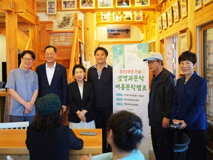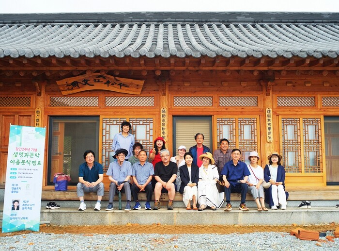 | ▲ 생명과 문학-임원진 지난 3일 해남군 해남읍 연동리 소재 토문재에서 창간 2주년 기념 여름캠프 운영 기념촬영 / 해남군 제공 |