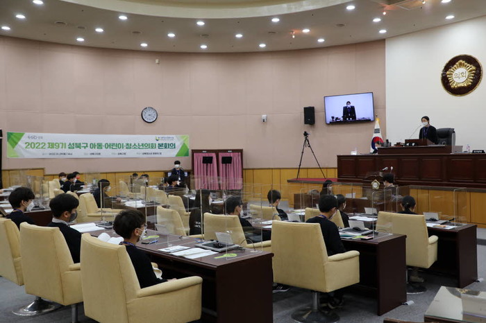 | ▲ 2022 제9기 성북구 어린이·청소년의회 본회의 진행 모습. (사진제공=성북구청) |