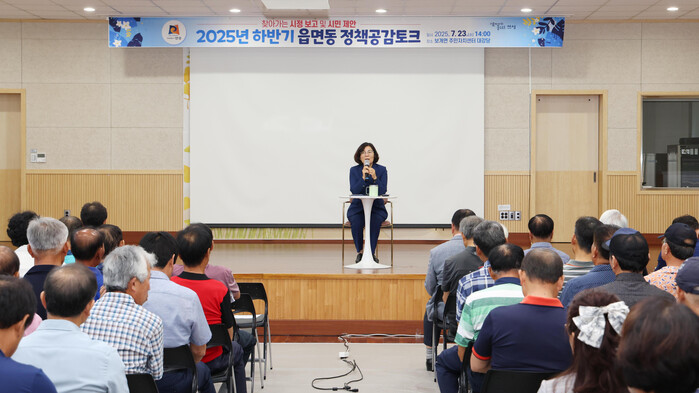 [안성=오왕석 기자] 보개면 주민과 함께하는 2025년 하반기 정책공감토크가 주민 100여 명이 참석한 가운데 7월 23일 보개면 주민자치센터 대강당에서 자유롭게 의견을 제시하는 자리를 가졌다.