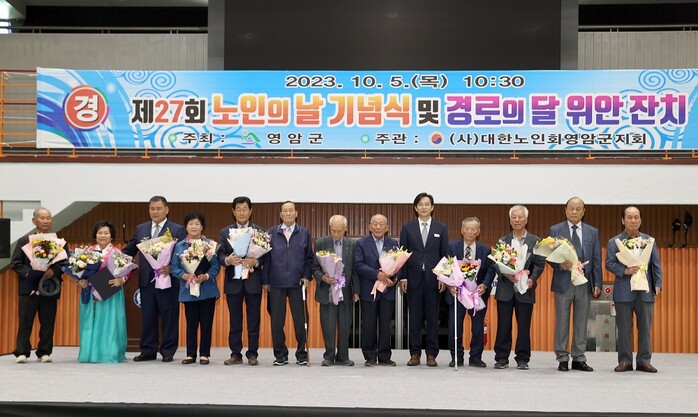[영암=정찬남 기자] 전남 영암군(군수 우승희)이 5일 영암군실내체육관에서 대한노인회 영암군지회 주관으로 '제27회 노인의날 기념식'을 개최했다.