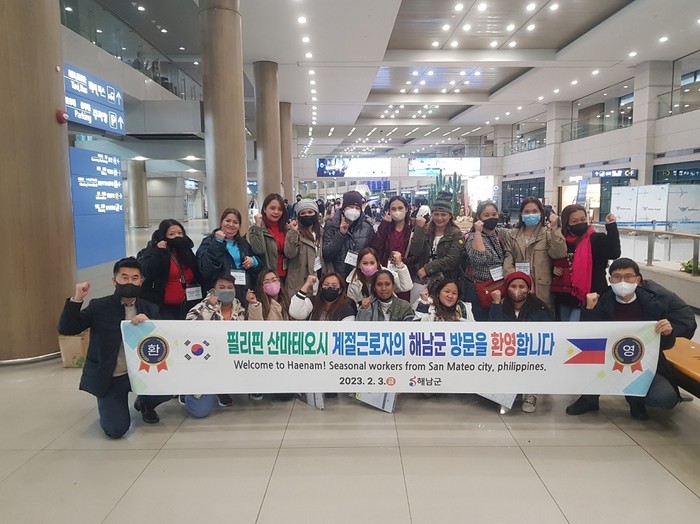 지난 3일 필리핀 산마테오 계절근로자 17명이 1차로 입국해 법무부 지정병원에서 마약검사를 받고, 인권보호·범죄예방 교육 후 해남군 관내 농가에 배치됐으며, 오는 10일에는 필리핀 지엠에이 계절근로자 24명이 2차로 입국할 예정이다.