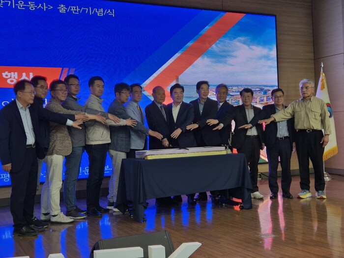 ‘평택항 신생매립지 되찾기 운동사’ 출판기념식은 ▲식전공연▲내빈소개▲평택항 신생매립지 경계분쟁 승소 경과보고▲유공자 감사패 증정▲기념사 및 축사▲회고사▲승소 축하 케이크 절단식 순으로 진행됐다.