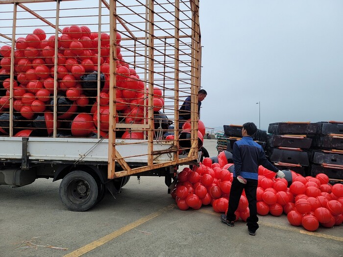 | ▲ 친환경 부표 공급 / 해남군 제공 |