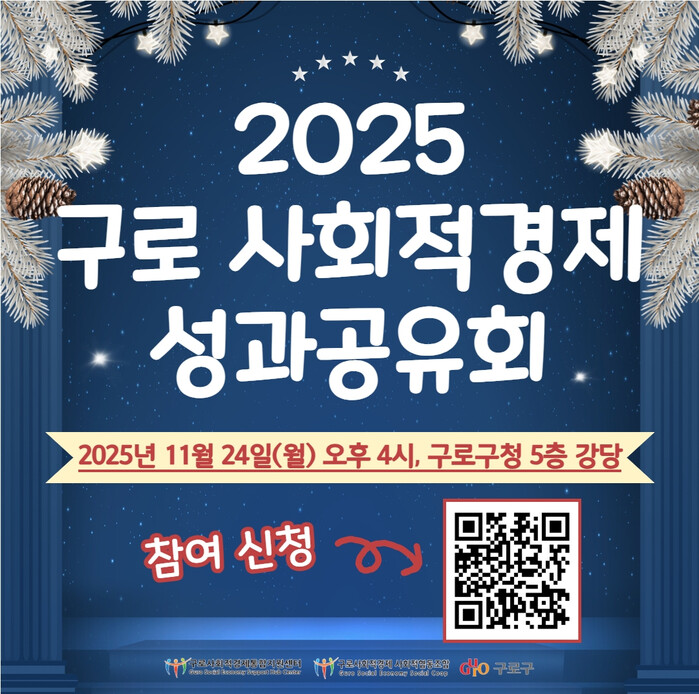 [시민일보 = 박소진 기자] 구로구(구청장 장인홍)가 오는 24일 구청 5층 강당에서 ‘2025년 구로 사회적경제 성과공유회’를 개최한다고 밝혔다.