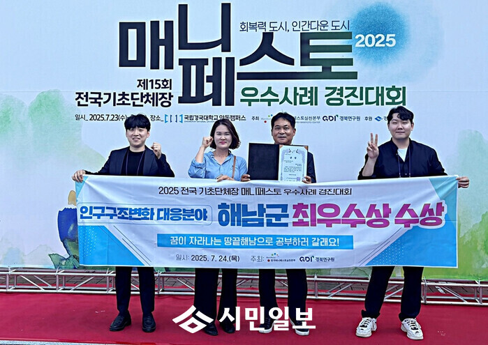 [해남=정찬남 기자] 전남 해남군이 2025 전국 기초단체장 매니페스토 우수사례 경진대회에서 최우수상을 수상했다.
