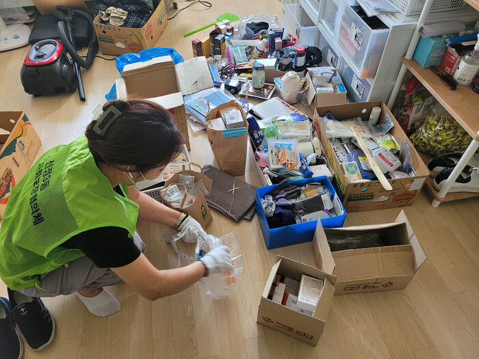 | ▲ 2024년 주거환경 취약계층에 정리정돈을 지원하고 있는 동지역보장협의체 위원 모습. (사진=양천구청 제공) |