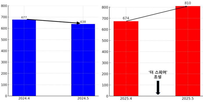 특히, 지난해는 벚꽃 시즌인 4월 677만명에서 꽃이 떨어진 5월에는 638만명으로 40만명이 줄었다. 반면, 올해는 4월 674만명에서 5월 810만명으로 136만명이 늘어 ‘더 스피어’ 효과가 입증됐다.