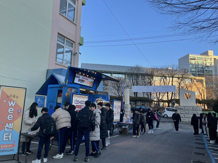 현장에서는 학생들에게 핫도그 간식을 제공하며 격려하고, ‘올 한 해 나에게 듣고 싶은 말은?’을 주제로 한 참여 공간을 운영해 학생들이 스스로를 돌아보는 시간을 가졌다.