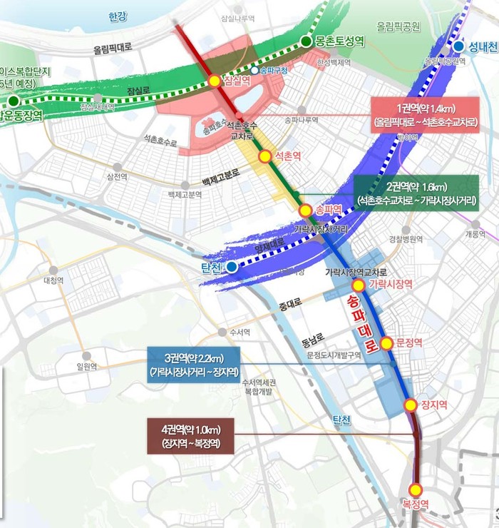| ▲ 권역별로 구분된 송파대로 위치도. (사진=송파구청 제공) |